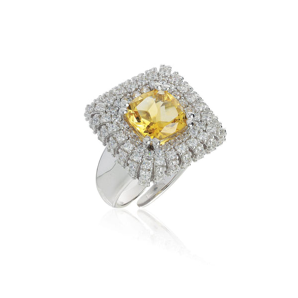 Anello in argento 925 rodiato con idrotermale citrino e cubic zirconia. Articolo completo di scatola e garanzia.
