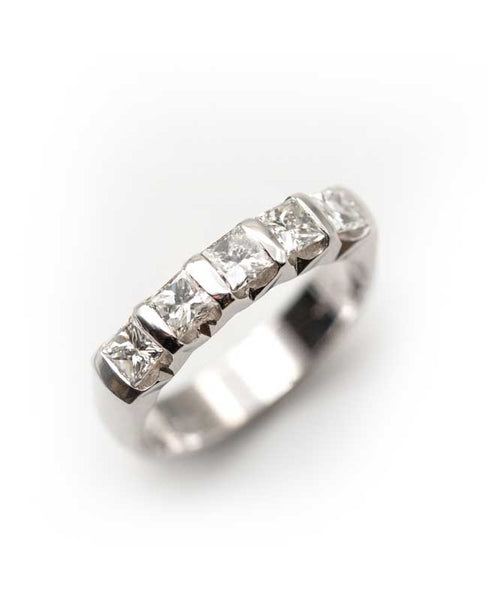 Fedina Riviere di Mario Porzio in oro bianco con 5 diamanti naturali.Ct complessiva 0,70, qualità G VS.Peso complessivo: 3,40 g.
