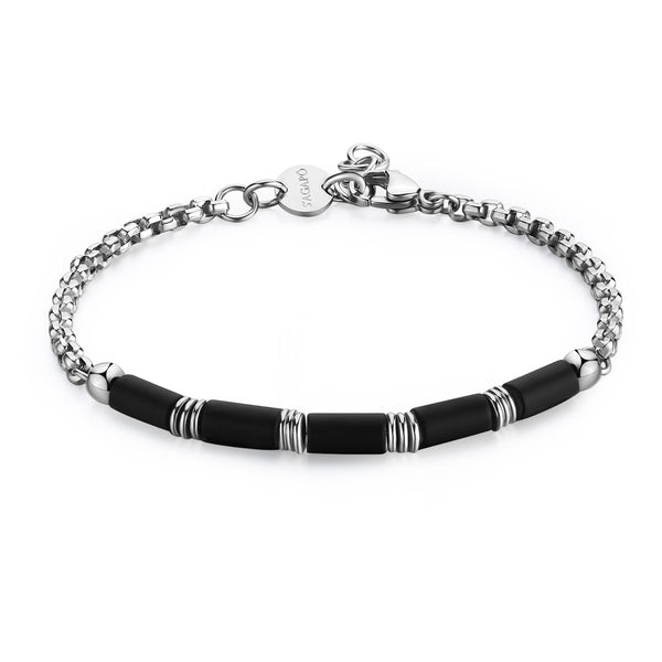 Bracciale da uomo S'Agapõ in acciaio 316L con catena e centrale con elementi in onice e acciaio 316L. Articolo completo di scatola e garanzia.