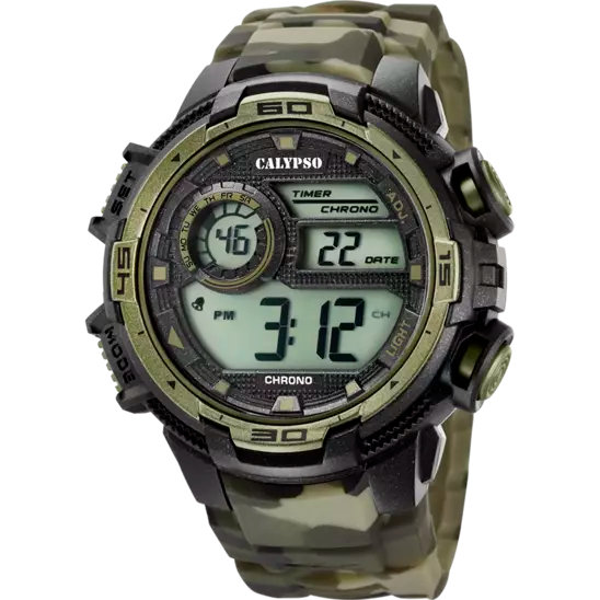 Orologio Digitale Calypso Da Uomo Della Collezione Digital For Man. Modello Con Diametro Di Cassa Di 51,5 Mm, Quadrante Con Display Digitale, E Cinturino In Gomma. La Resistenza All'Acqua È Di 10 Atmosfere E Il Movimento È M1090.