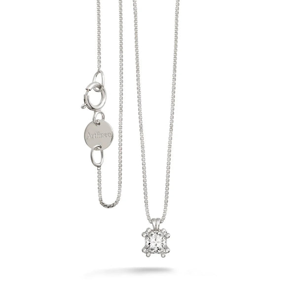 Collana in oro 18 kt rodiato con diamante taglio princess. Articolo completo di scatola e garanzia.