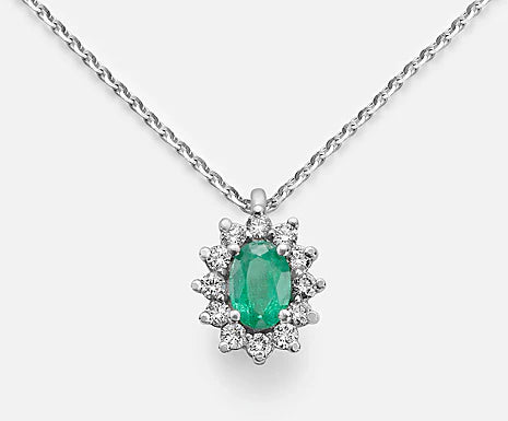 Collana in Oro 18kt e varietà smeraldo ovale 6x4 e Diamanti ct.0,40