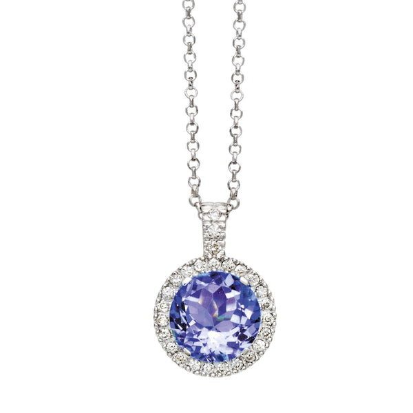 Collana in oro bianco 18 carati con diamanti bianchi naturali e tanzanite centrale taglio tondo. Lunghezza 42 cm. Articolo completo di scatola e garanzia.
