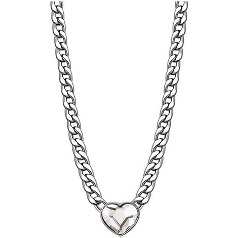Collana da donna della collezione My Love realizzata con catena groumetta in acciaio 316L anallergico. Pendente a forma di cuore con cristallo taglio a cuore. Lunghezza di 44 cm. Chiusura a moschettone. Completo di scatola e garanzia.