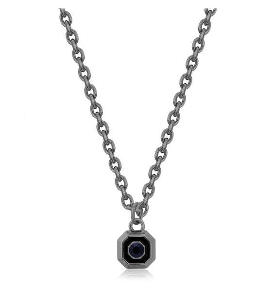 Collana da uomo della collezione Snap realizzata in acciaio anallergico con trattamento color rutenio. Pendente ottagonale con cristallo jet centrale. Lunghezza di 48 cm. Chiusura a moschettone.Articolo completo di scatola e garanzia.
