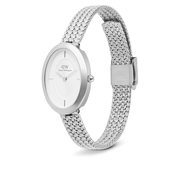 L’orologio Daniel Wellington DW00100884 – Juliette è l’incontro perfetto tra il fascino vintage e la raffinatezza moderna. Con la sua cassa ovale in acciaio inox 316L dal profilo sottile e slanciato, questo segnatempo reinterpreta un’icona retrò in chiave contemporanea. La finitura silver, sobria e luminosa, dona luce al polso con discrezione e classe. Il cuore dell’orologio è il suo elegante quadrante bianco Sunray, caratterizzato da una delicata trama a raggiera che cattura la luce con ogni movimento. Gli indici rettangolari lucidi a ore 3, 6, 9 e 12 aggiungono profondità e struttura, mentre la forma ovale in rilievo al centro del quadrante ne esalta l’identità unica. Questo equilibrio tra dettagli grafici e linearità fa del modello Juliette un orologio donna elegante, versatile e mai banale. Il cinturino in maglia intrecciata silver, anch’esso in acciaio inox 316L, avvolge il polso come un bracciale di design, regalando una sensazione di leggerezza e comfort. Le anse nascoste esaltano la continuità delle forme, fondendo cinturino e cassa in un’unica linea armonica. Il sistema a screw pin bar consente di intercambiare facilmente il cinturino, offrendo la libertà di personalizzare lo stile in base all’occasione. Al suo interno batte un movimento al quarzo giapponese, preciso e affidabile, mentre il vetro minerale protegge il quadrante. La lunghezza del cinturino è regolabile da 125 a 192 mm, e l’impermeabilità è garantita fino a 3ATM, rendendolo resistente alla pioggia e agli schizzi.