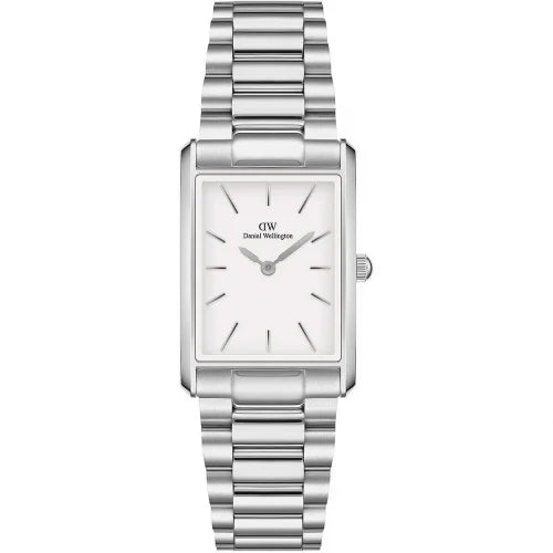 Orologio da donna Daniel Wellington della collezione collezione The Bound Silver. Cassa in acciaio color argento di dimensioni 32x22 mm. Bracciale a 3 maglie in acciaio color argento. Quadrante di colore bianco. Movimento al quarzo e resistenza all'acqua fino a 30 atm. Completo di scatola e garanzia.