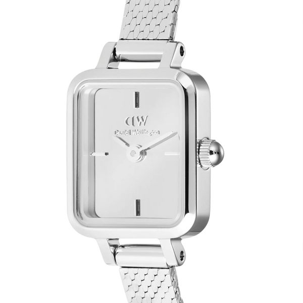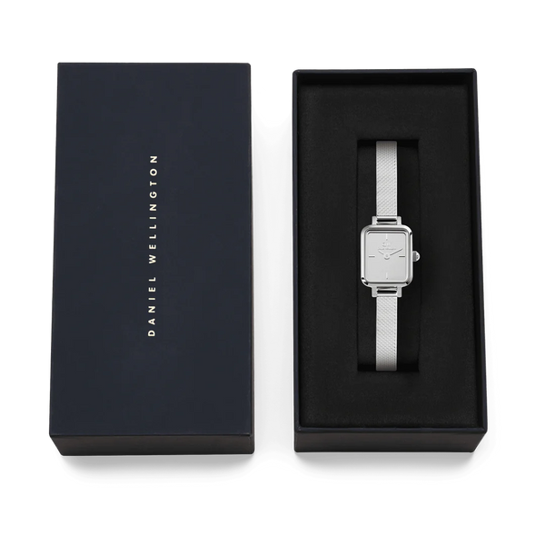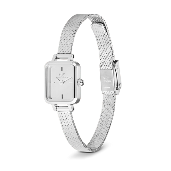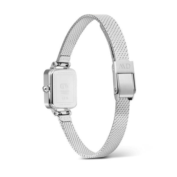 Orologio da donna Daniel Wellington con cassa in acciaio inossidabile 316L, di spessore 6 mm. Movimento al quarzo giapponese. Cinturino in maglia lucidata in acciaio inossidabile 316L, largo 6 mm. Resistenza all'acqua fino a 3 atm. Articolo completo di scatola e garanzia.