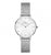 Orologio da donna Daniel Wellington della collezione Lumine con movimento al quarzo GL22 e funzioni di solo tempo. Cassa rotonda in acciaio inox dal diametro di 28 mm e spessore di 6 mm. Quadrante in madreperla bianca con cristalli scintillanti bianchi agli indici. Cinturino in maglia milano d'acciaio anallergico largo 12 mm. Chiusura con fermaglio di sicurezza. Resistente all'acqua fino a 30 metri di profondità. Completo di scatola e garanzia.