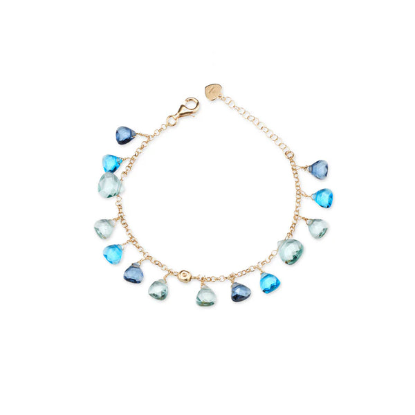 Il bracciale Capri con cristalli naturali azzurri ha una base in argento 925 con laminatura in oro puro 24kt. Chiusura regolabile. Articolo completo di scatola e garanzia.