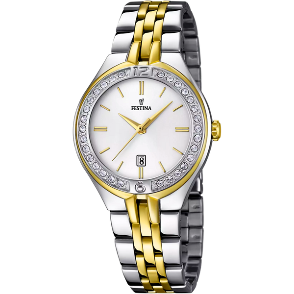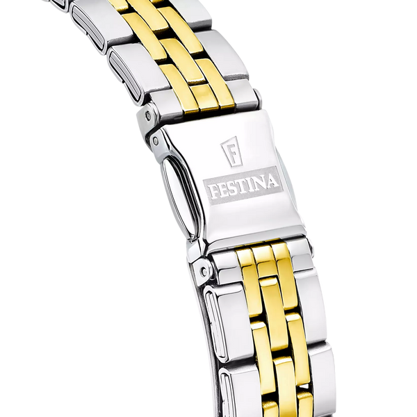 Orologio da donna Festina con cassa rotonda in acciaio inossidabile di diametro 32,5 mm e spessore 9 mm. Quadrante grigio con vetro minerale. Cinturino in acciaio inossidabile multicolore con chiusura a doppio pulsante. Movimento al quarzo Miyota Gl10. Resistenza all'acqua fino a 5 atm. Articolo completo di scatola e garanzia.
