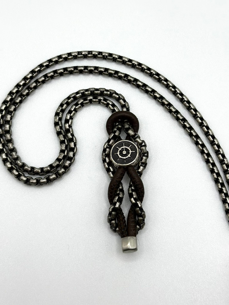 Collana da uomo in acciaio con pendente a nodo navale con timone.