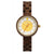 Orologio Donna solo tempo tre sfere, movimento al quarzoQuadrante bianco e giallo con alveare stilizzatoCassa in legno noce, diametro 36 mmVetro minerale e fondello chiuso con vitiCinturino in legno noceResistente all’acqua fino a 3 atm