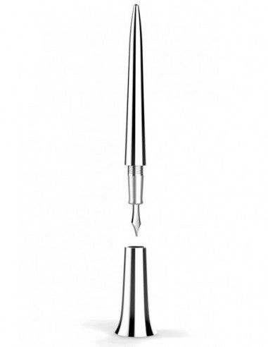 Penna stilografica in alluminio color argento con tappo a vite della collezione Locman Mia. La particolarità del tappo le permette di rimanere sempre in verticale. Completa di scatola e garanzia.