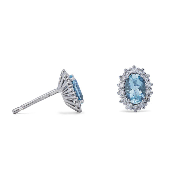 Orecchini in Oro 18kt acquamarina ovale 6x4 ct.0,60 Diamanti