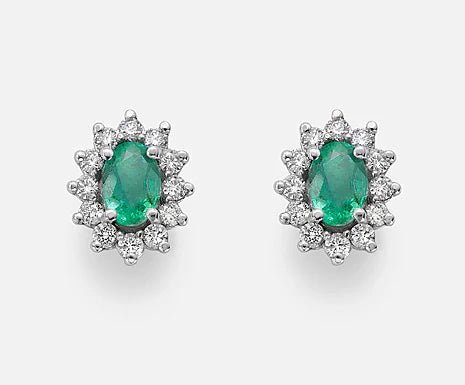 Orecchini in Oro 18kt varietà smeraldo ovale 6x4 e Diamanti ct.0,70