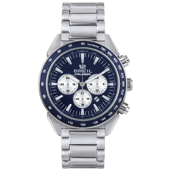 Orologio cronografo da Uomo di Breil della collezione Cruiser. Cassa rotonda di diametro 44 mm, quadrante analogico di colore blu sormontato da vetro minerale. Tipo di chiusura deployante con fermaglio di sicurezza. Impermeabilità fino a 5 atm. Articolo completo di scatola e garanzia.