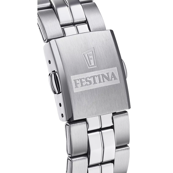 Orologio da uomo Festina con cassa rotonda in acciaio inossidabile di diametro 40 mm e spessore 9,1 mm. Quadrante nero con vetro minerale. Cinturino in acciaio inossidabile grigio con chiusura a doppio pulsante. Movimento al quarzo Miyota Gm10. Resistenza all'acqua fino a 10 atm. Articolo completo di scatola e garanzia.