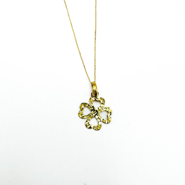 Ciondolo a forma di quadrifoglio. In oro 9 carati.