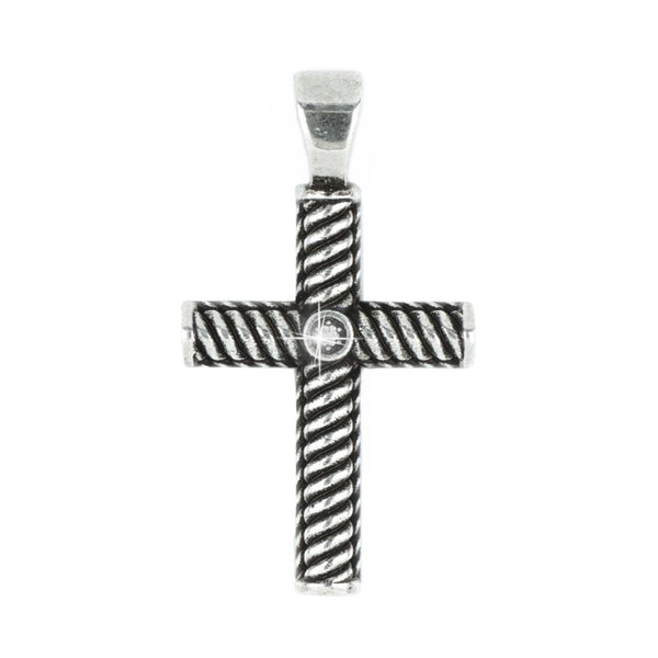 Pendente a croce in argento 925 brunito. Il gioiello, impreziosito da placcatura palladio e oro nero che ne preserva la lucentezza nel tempo, è coronato da un diamante naturale al centro. Il pendente è alto 31 mm (compresa la contromaglia), largo 18 mm ed è spesso 3,5 mm. Articolo completo di scatola e garanzia.
