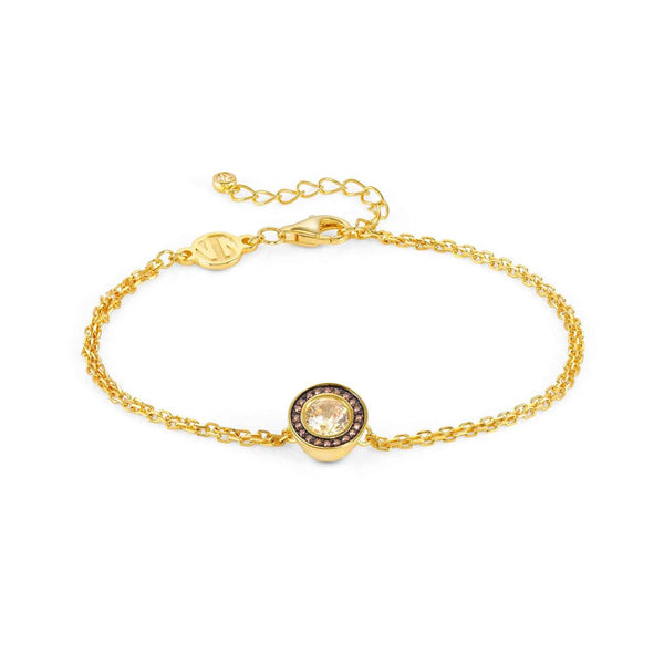 Bracciale in Argento 925 con rivestimento superficiale in Oro Giallo 999 e Cubic Zirconia Champagne e Caffè. Lunghezza 19.5 cm messa a misura 16.5 cm. Chiusura con Cubic Zirconia Champagne.