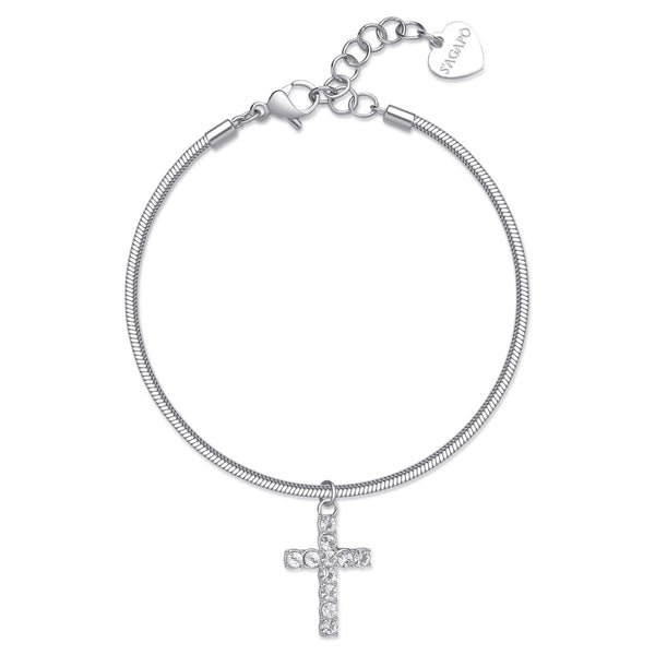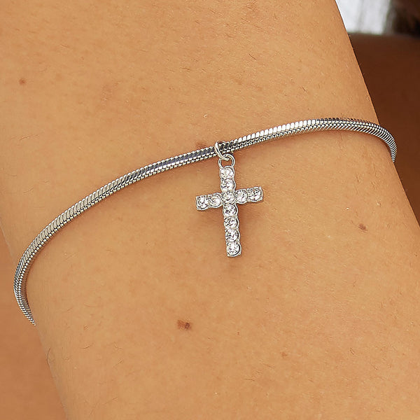 Bracciale in acciaio 316L con pendente a forma di croce con cristalli. Articolo completo di scatola e garanzia.