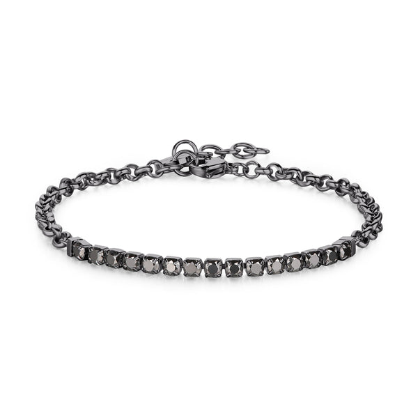 Bracciale da uomo S'Agapõ in acciaio 316L e finitura pvd colore rutenio con centrale tennis con cubic zirconia colore neri. Articolo completo di scatola e garanzia.