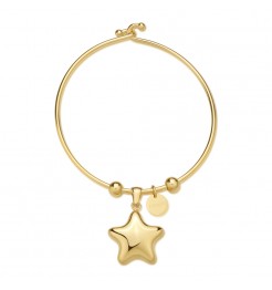 Braccialetto rigido da donna della collezione Stellar realizzato in acciaio anallergico dorato. Pendente a forma di stella. Diametro di 5,8 cm. Completo di scatola e garanzia.
