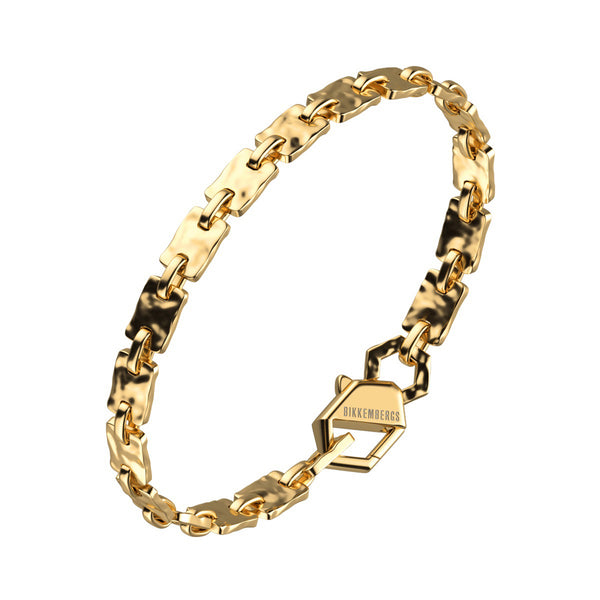 Bracciale da uomo Bikkembergs in acciaio placcato oro giallo con diamantino 0,01 ct sulla chiusura. Articolo completo di scatola e garanzia.