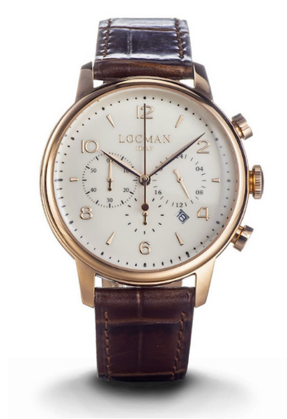 Orologio da uomo con cassa in acciaio 42 mm in PVD rose gold. Movimento cronografo al quarzo myota. Ansa da 20 mm. Vetro minerale antigraffio con trattamento zaffiro. Impermeabilità fino a 5 ATM. Completo di scatola e garanzia.