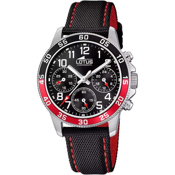 L'orologio Lotus 18581/5 è perfetto per i bambini. Ha una cassa in acciaio inossidabile 316L e vetro minerale, oltre ad un cinturino in pelle. La cassa ha un diametro di 36 mm e uno spessore di 9,7 mm. Il quadrante di colore nero ha un vetro di tipo minerale. Il cinturino in pelle è di colore nero. Movimento al quarzo e resistenza all'acqua fino a 5 atm. L'orologio è accompagnato nella scatola da un bracciale di colore nero e marrone. Articolo completo di scatola e garanzia.