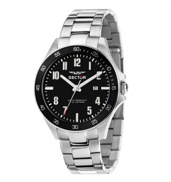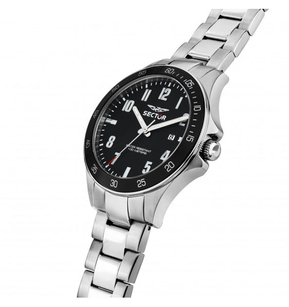 Orologio da uomo della collezione 230 con movimento al quarzo Miyota 2115 e funzioni di solo tempo con data.Cassa in acciaio inossidabile del diametro di 43 mm. Lunetta in alluminio con trattamento ip nero.Quadrante analogico nero con indici a numeri arabi e datario a ore 3.Cinturino in acciaio anallergico; chiusura deployante con pulsanti.Resistente all'acqua fino a 100 metri di profondità.Articolo completo di scatola e garanzia.