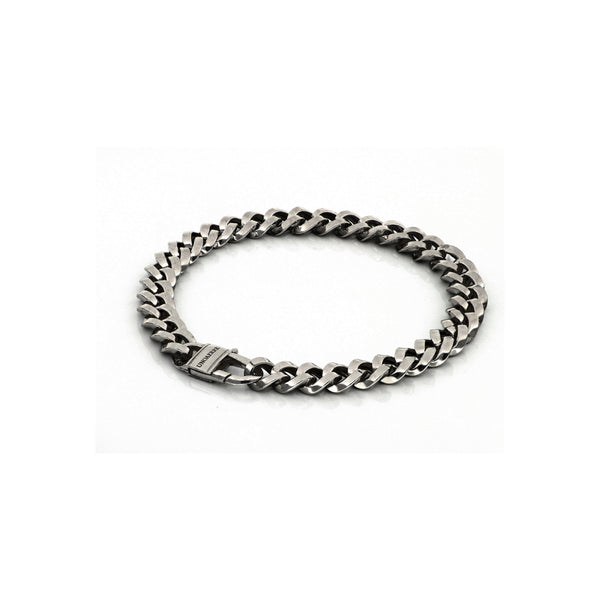 Bracciale da uomo in argento 925 con catena grumetta battuta in argento brunito. Lunghezza 19,00 cm. Articolo completo di scatola e garanzia.
