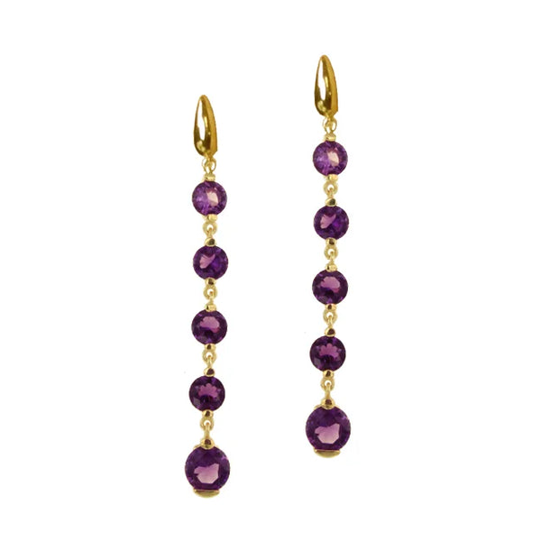 Orecchini PITTIeSISI in argento 925 e finitura dorata 24kt liscia e lucida con 5 pietre di quarzo viola. Articolo completo di scatola e garanzia.