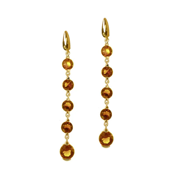 Orecchini PITTIeSISI in argento 925 e finitura dorata 24kt liscia e lucida con 5 pietre di quarzo cognac. Articolo completo di scatola e garanzia.